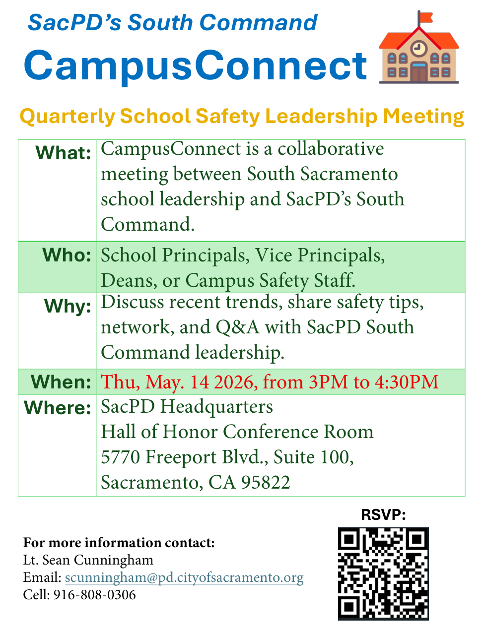 Find out when the next meeting is and how to RSVP